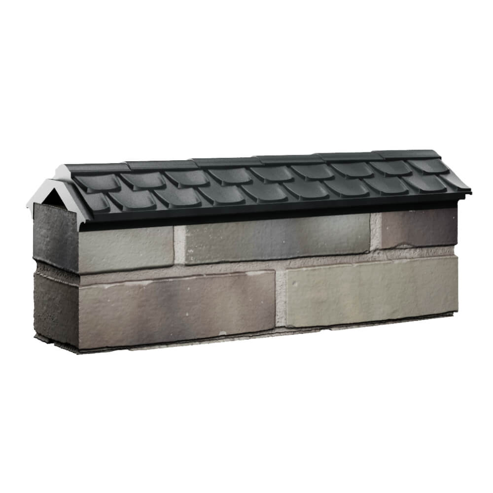 Парапет Elbrus Черный 175 х 510 х 65 мм с посадкой на 0.5 кирпича (130 мм) под натуральную черепицу может быть применен как в цокольной, так и в верхней части забора в виде конька.