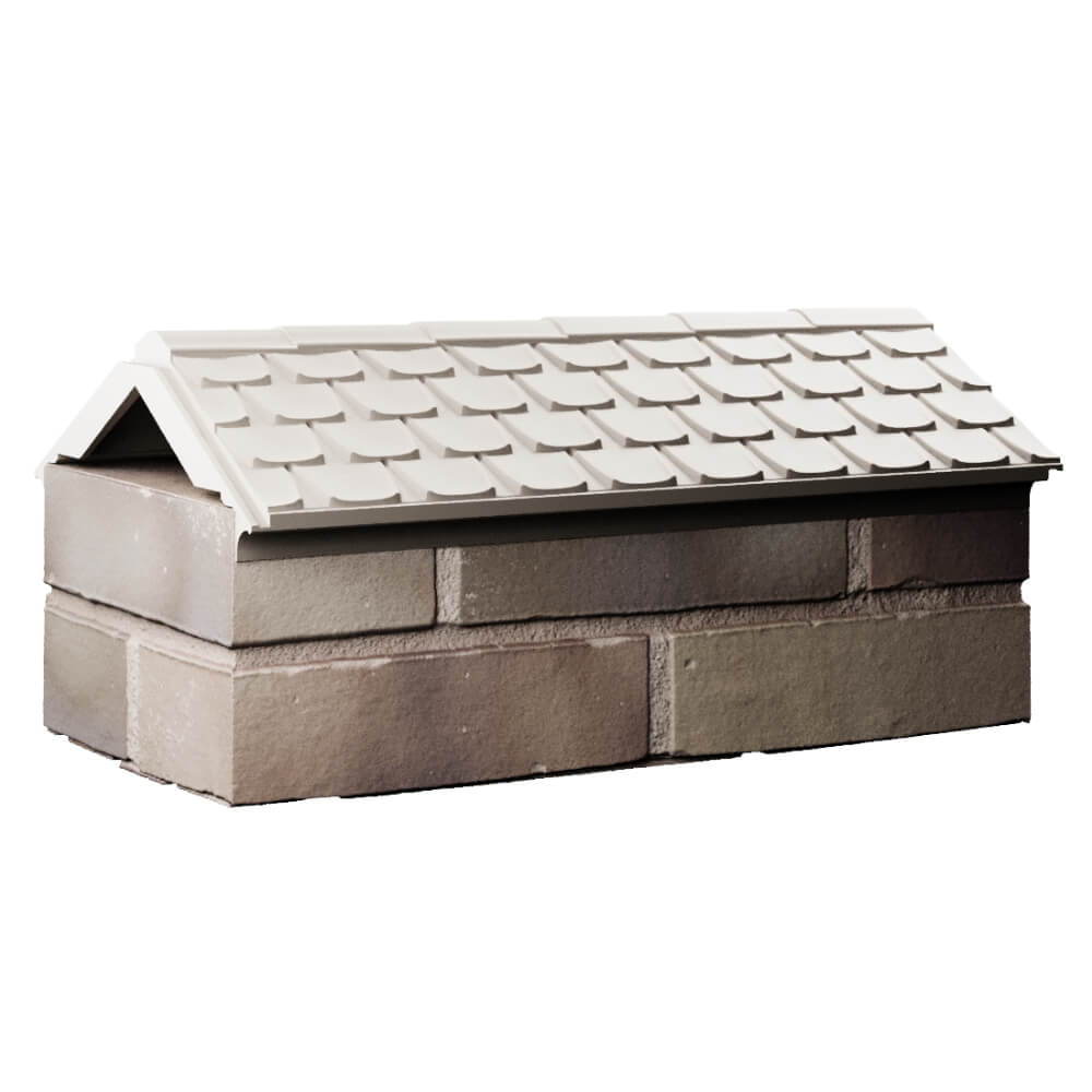 Парапет Elbrus Бежевый 303 х 510 х 105 мм с посадкой на 1 кирпич (255 мм) под натуральную черепицу может быть применен как в цокольной, так и в верхней части забора в виде конька.